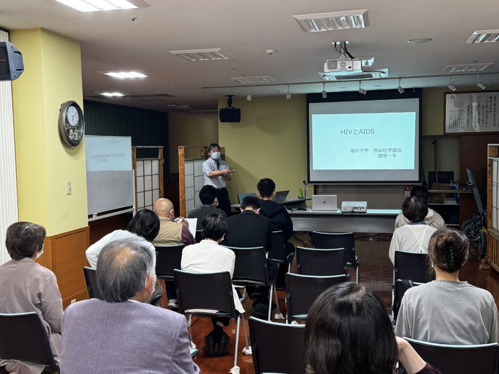 活動報告 トップページ 活動報告 HIV出前研修会を実施しました 2025.11.04HIV出前研修会を実施しました 10月28日に特養老人ホームあさくら苑(福井市)にてHIV長期療養体制事業に関するHIV出前研修会を実施し、本院感染症学講座の酒巻教授が講演を行いました。20名の方に参加して頂き、ありがとうございました。、また、オンラインでも配信を実施しました。 お知らせカテゴリ お知らせ 活動報告